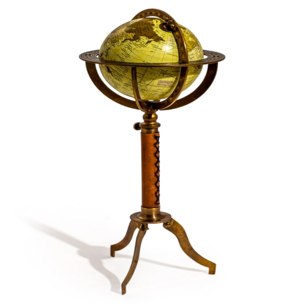 Discover the charm of a Large Antique Globe resting on a sturdy metal and leather stand, featuring elegant brass feet. This classic piece combines timeless design with durable materials, making it a sophisticated addition to any space.